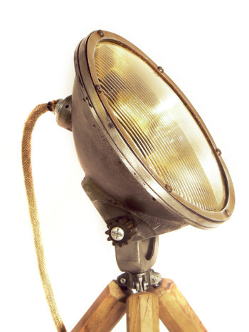 Le point de départ de cette lampe est l’abat-jour. C’est une bande de laiton ajourée à l’emporte-pièce industriel, récupérée et qui à l’origine devait être jetée. De petites ailettes en laiton provenant d’une vielle pompe, permettent de maintenir l’ensemble constitué de trois parties. Pour le pied, une grosse hélice en bronze provenant également d’une vielle pompe de relevage. Avec les ailettes, c’est une autre partie des trésors récupérés lors de mon escapade Bretonne. Il restait à assembler les deux. Le cuivre est apparu comme une évidence. J’affectionne tout particulièrement le mélange de ces trois matières. Faire un montage beau et cohérent a nécessité pas mal de travail. CVla m’a pris beaucoup de temps avant de trouver le montage définitif. Enfin, une grosse ampoule cuivrée pour l’éclairer.